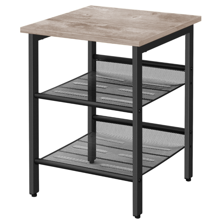Hoppa! Nachtkastje in greige / metaal is een handige toevoeging aan uw slaapkamer of woonkamer. Dit nachtkastje van 40x40x55 cm heeft 2 stabiele rasterplanken die zowel vlak als licht hellend geplaatst kunnen worden voor het opbergen van tijdschriften, boeken en andere spullen. De combinatie van het robuuste stalen frame en spaanplaat maakt dit nachtkastje belastbaar tot 20 kg in totaal. Het monteren van dit praktische meubel is eenvoudig dankzij de gedetailleerde instructies en de meegeleverde inbussleutel.