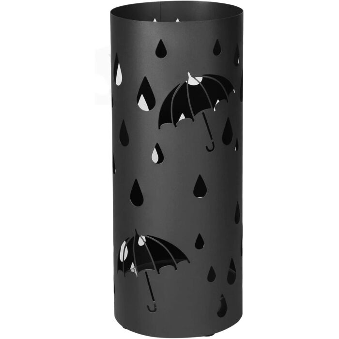 Het ontwerp van de paraplubak is voorzien van uitsparingen in regendruppel- en paraplu-vorm, waardoor het tegelijkertijd functioneel en elegant is. Het matte zwart geeft een moderne uitstraling aan je interieur.