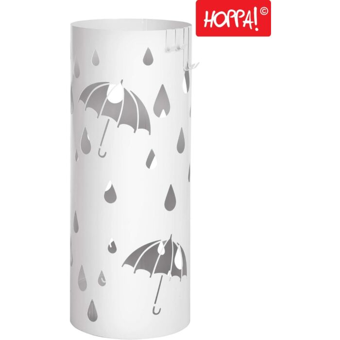 Hoppa! | Ronde Parapluhouder | Metaal | Regenmotief | Wit | 19,5 x 19,5 x 49 cm (B x D x H)