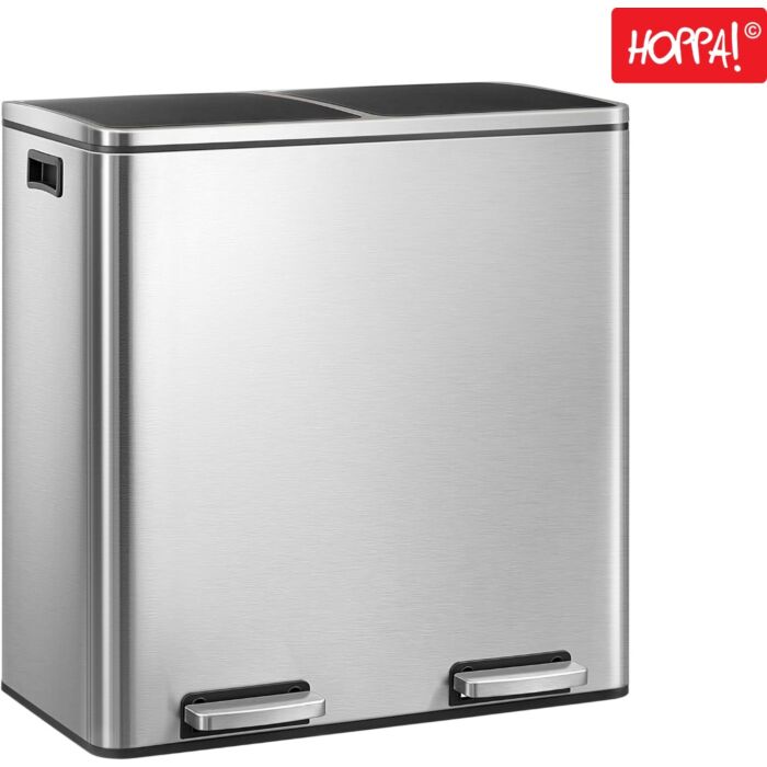 De Hoppa! RVS Afvalbak 60L in grijs is de perfecte afvaloplossing voor uw huis of bedrijfspand. Met 2 gescheiden binnenbakken maakt deze afvalbak het eenvoudig om afval te scheiden en ruimte te besparen. Het praktische ontwerp zorgt ervoor dat u uw afval efficiënt kunt beheren.