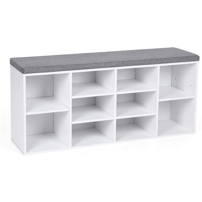 Het schuimrubberen oppervlak van de zitting is veilig bevestigd aan het rek met klittenbandsluitingen. Hierdoor kan het kussen eenvoudig worden verwijderd, waardoor de schoenenkast ook verticaal kan worden gebruikt voor decoratie, boeken of planten.