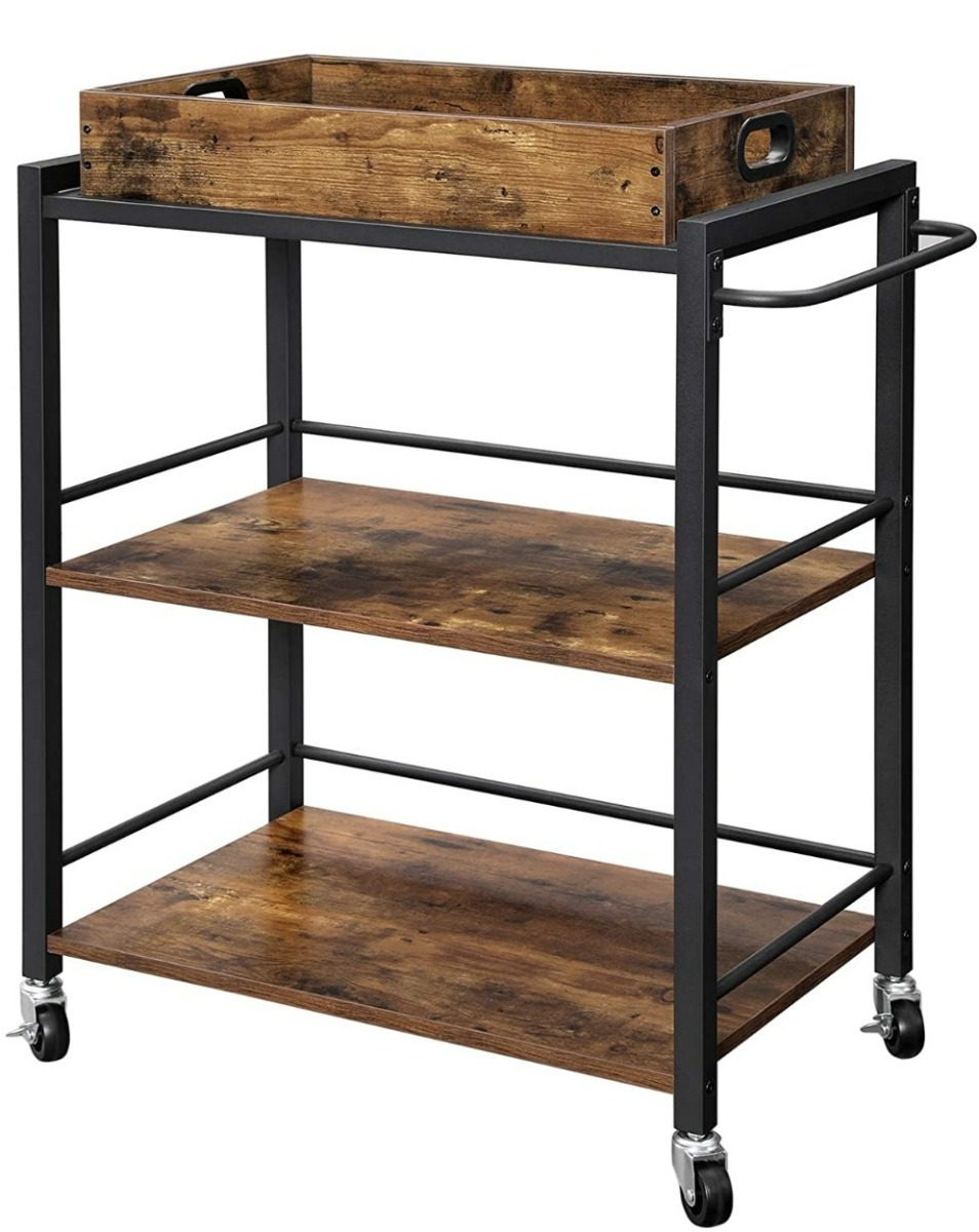 Hoppa! | Serveerkar | Bruin/Zwart | Metaal | 65 x 40 x 86 cm (B x D x H)