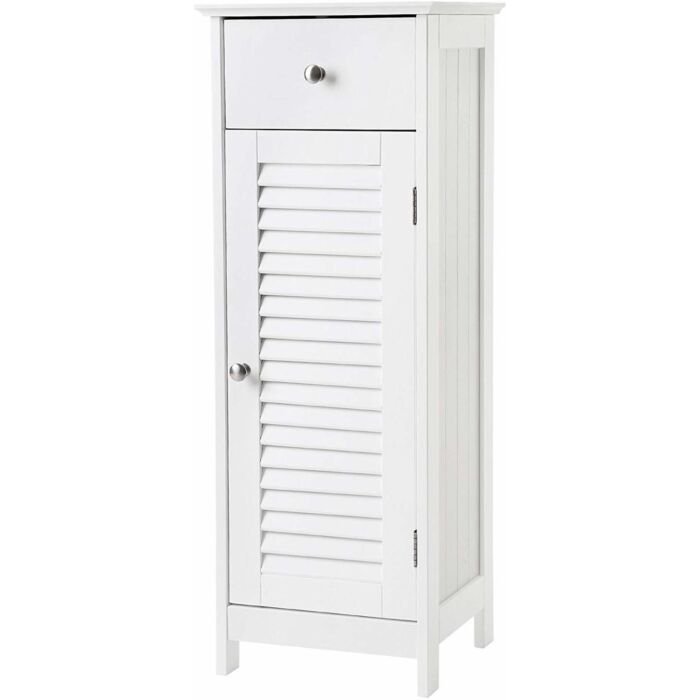 De afmetingen van de kast zijn 32 x 87 x 30 cm (B x H x D). Deze badkamerkast is vervaardigd uit hoogwaardig MDF-plaatmateriaal, wat zorgt voor een lange levensduur en bestendigheid tegen vocht.