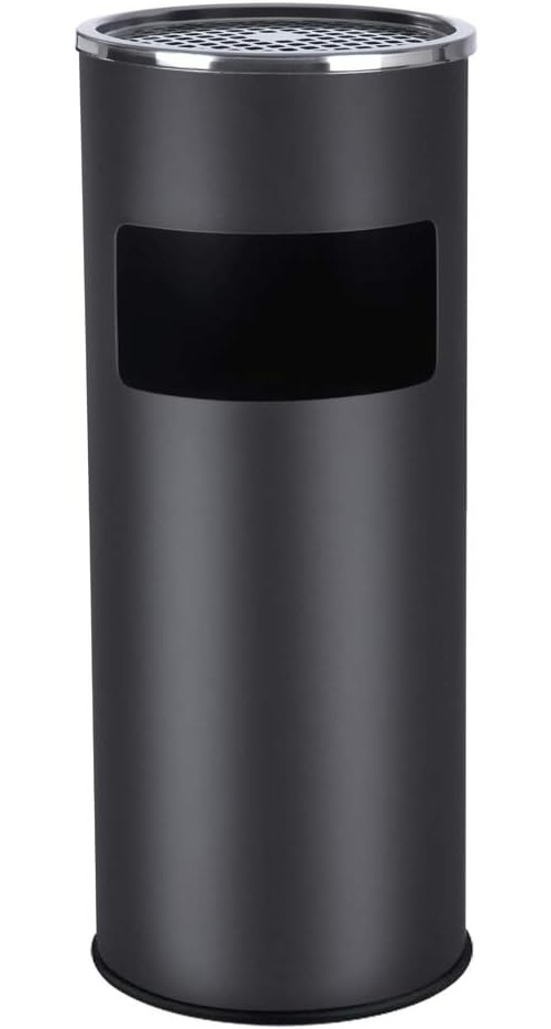 Hoppa! Staande Asbak Met Afvalbak 30 liter | Zwart | Metaal | 24,5 x 24,5 x 60,5 cm (B x D x H)
