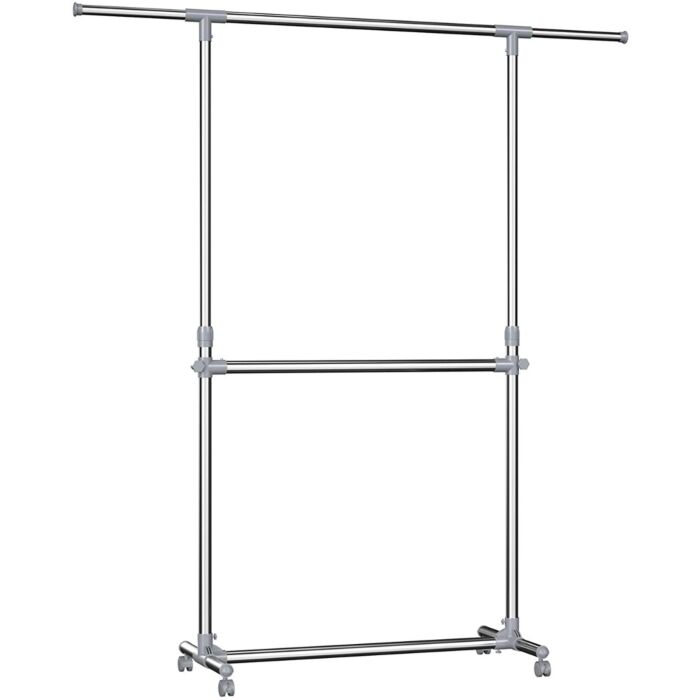 Hoppa! Verstelbare kapstok met 2 stangen – grijs metaal – 101–166 × 113–198 × 49 cm (L×H×B)