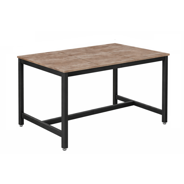 De eettafel is gemakkelijk te monteren en wordt geleverd met geïllustreerde instructies. Verstelbare poten en afgeronde hoeken zorgen voor stabiliteit. De vintage houtnerf afwerking en matte zwarte poten voegen karakter toe aan uw eetkamer.