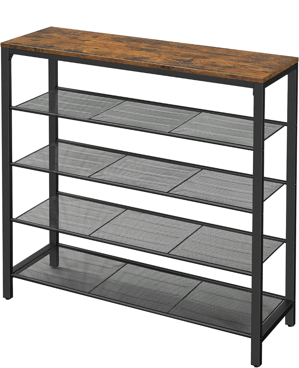Hoppa! Vintage Metalen Schoenenrek | 4 Lagen | Bruin | Metaal | 90 x 30 x 92.5 cm (B x D x H)