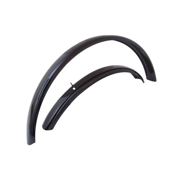 De spatborden zijn ontworpen om efficiënt water en vuil af te voeren, en zijn eenvoudig te monteren met de meegeleverde stangenset. De glanzende zwarte kleur zorgt voor een stijlvolle toevoeging aan het uiterlijk van uw fiets.