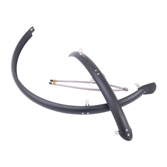 De spatbordset is ontworpen voor fietsen met 28" wielen en biedt een uitstekende bescherming tegen modder en vuil. Deze complete set is ideaal voor fietsers die regelmatig in wisselende weersomstandigheden rijden.
