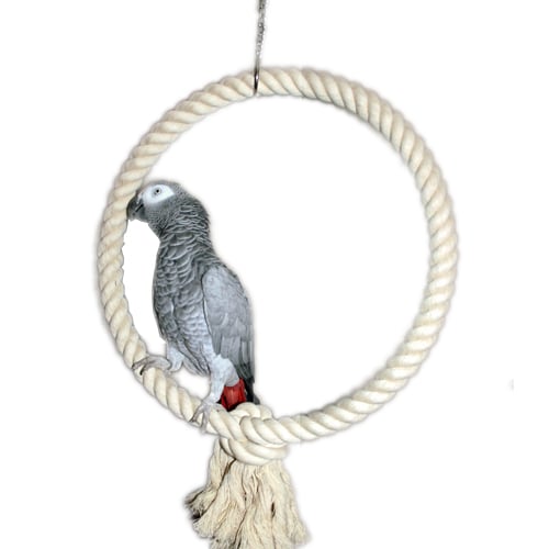 Deze speelring voor papegaaien heeft een dikte van 2,5 cm en is vervaardigd uit katoen. Je papegaai kan hier lekker op schommelen en tegelijkertijd met de speelflos spelen.