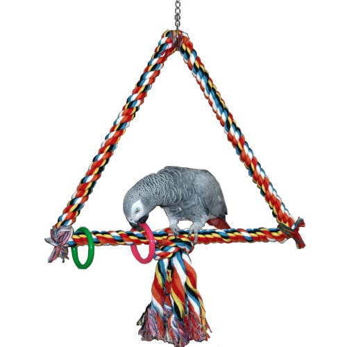 De schommel is ontworpen om zowel plezierig als functioneel te zijn. De flos en de twee inbegrepen speelringen verhogen de interactie en de speelmogelijkheden voor uw papegaai, waardoor ze actief en gelukkig blijven.