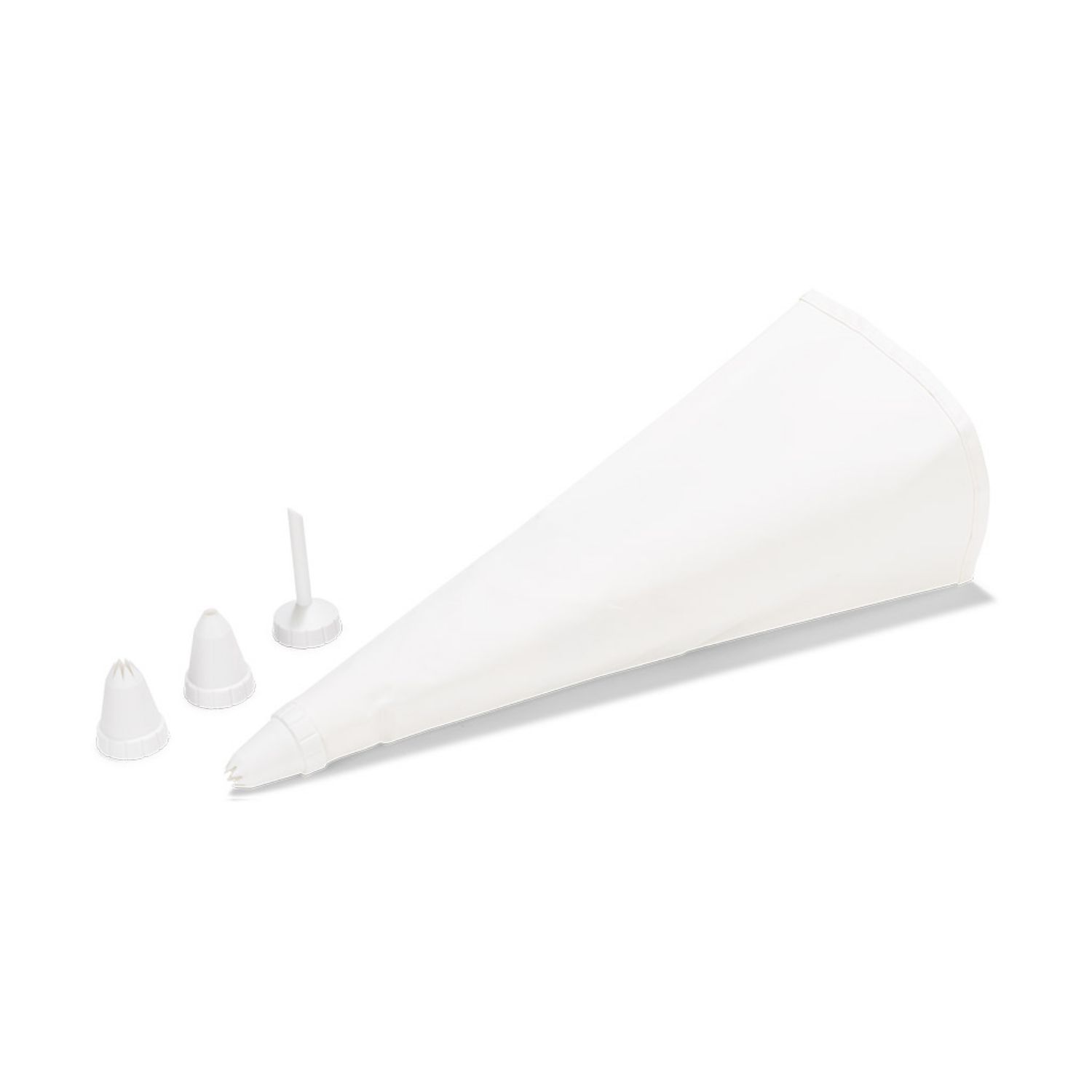 De spuitzak is zo ontworpen dat hij eenvoudig te vullen en te hanteren is. Dankzij de 4 bijgeleverde spuitmondjes creëert u moeiteloos diverse vormen en structuren.