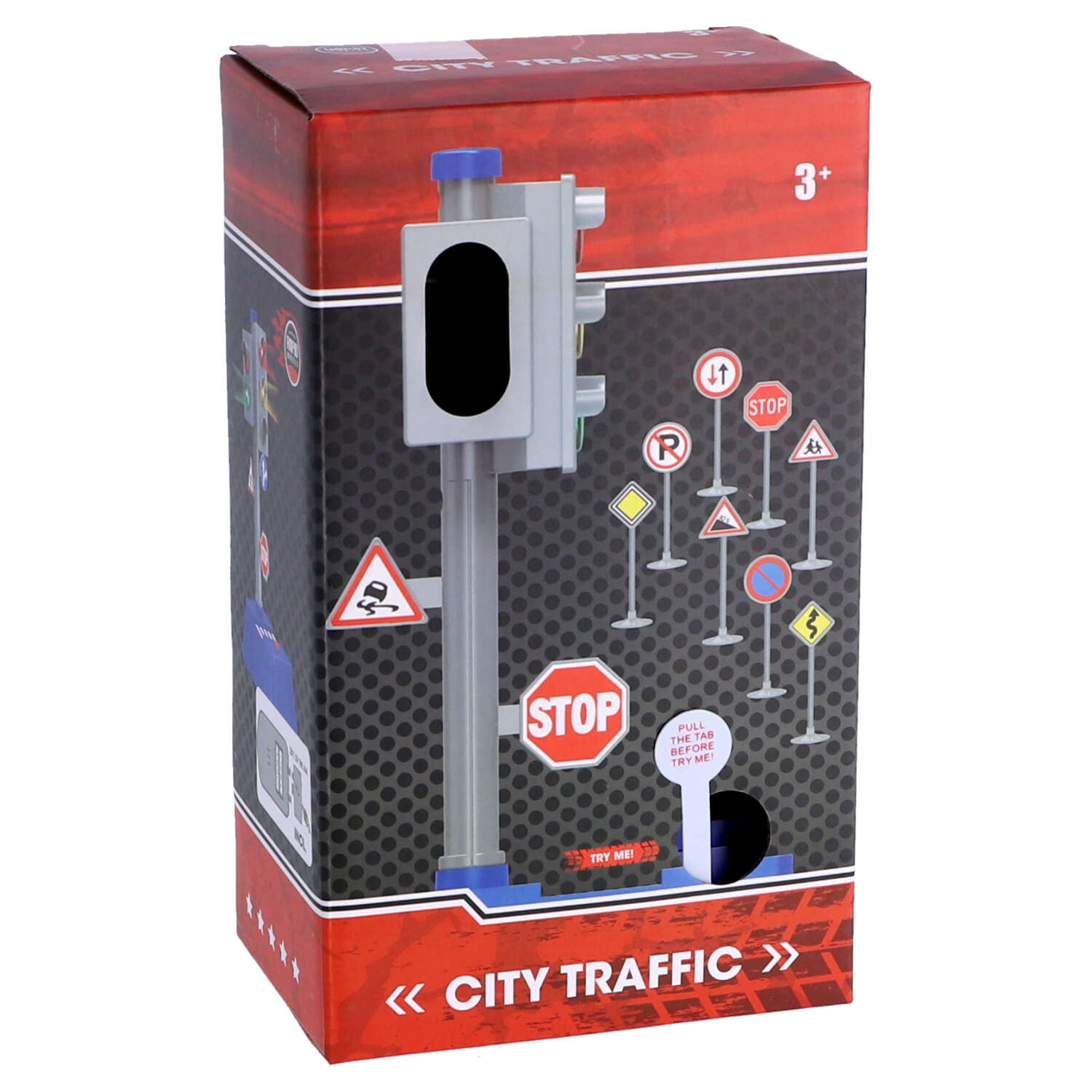 Het verkeerslicht werkt op batterijen en knippert als in het echt. De verkeersborden zijn helder van kleur en duidelijk zichtbaar.