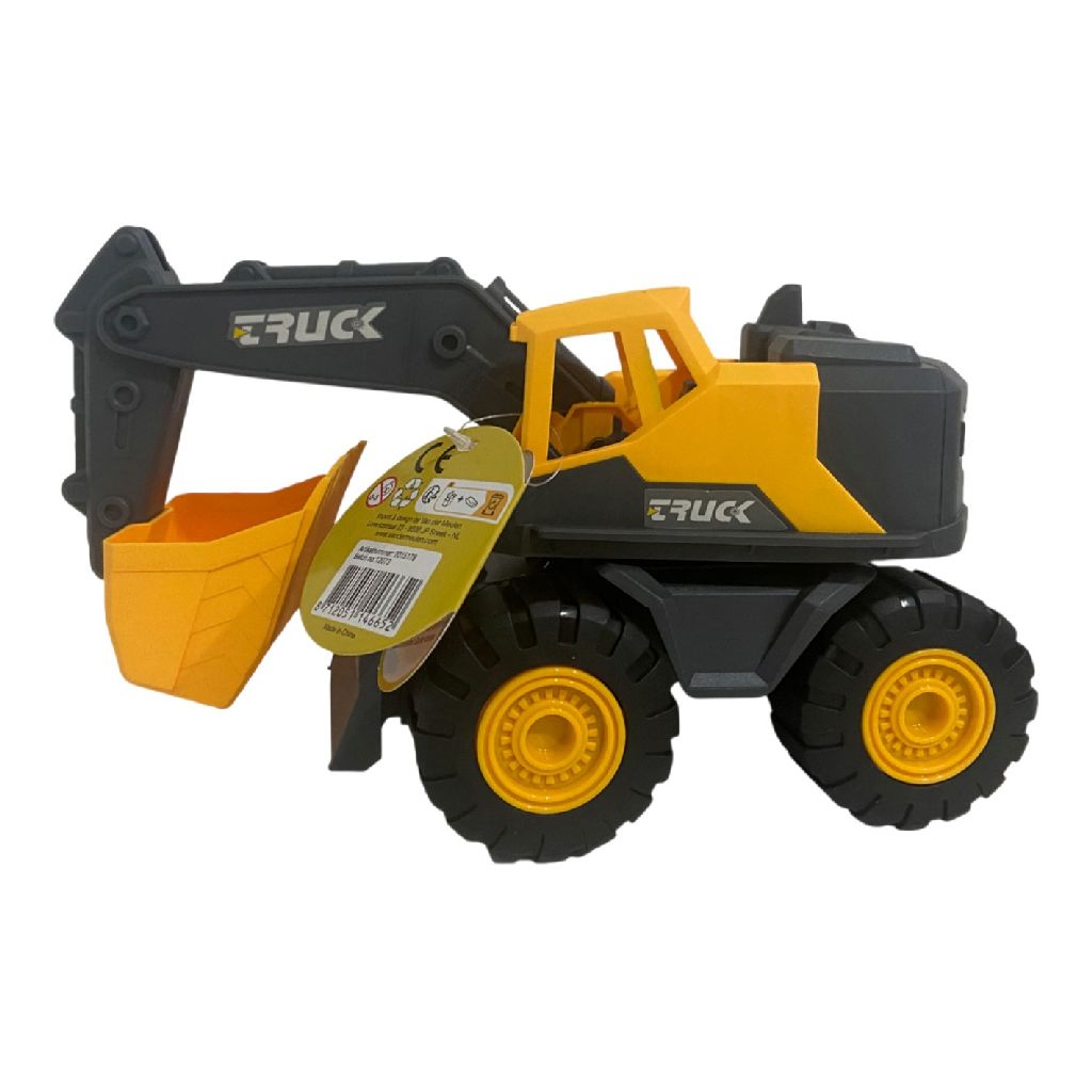 Deze graafmachine is vervaardigd uit stevig en scheurvast kunststof, zodat hij tegen een stootje kan. De afmetingen zijn perfect voor kleine handen, wat het gemakkelijk maakt voor kinderen om mee te spelen.