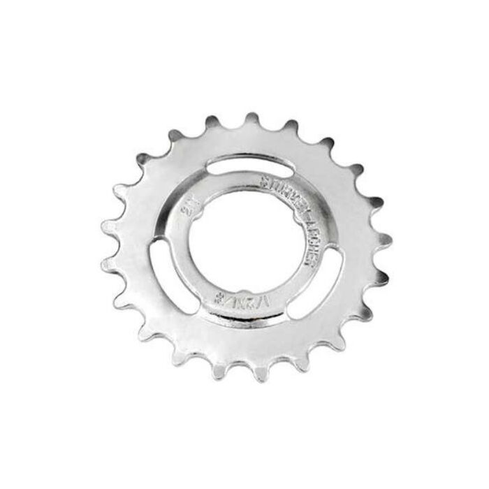Het vlakke ontwerp van het tandwiel zorgt voor een efficiënte krachtoverbrenging, wat resulteert in een soepel schakelgedrag en verbeterde prestaties tijdens het fietsen. De verchroomde afwerking biedt extra bescherming en draagt bij aan de algehele uitstraling van de fiets.