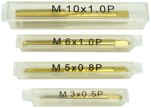 Deze tapset omvat taps in maten M3, M5, M6, M10, evenals 1/2" en 9/16" pedaaltaps (links en rechts). De verschillende taps maken het mogelijk om veelvoorkomende schroefdraadproblemen te verhelpen, zoals het herstellen van schroefdraad in spatborden en derailleurhangers.