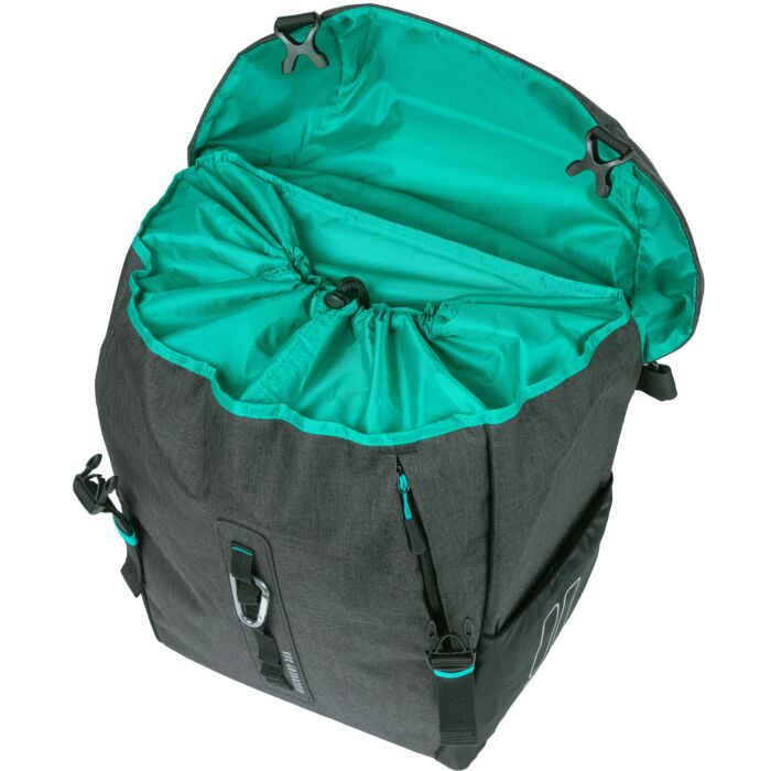 De tas biedt een aantal bijzondere ontwerpelementen, zoals het klittenband op de flap dat je in staat stelt de flap op te rollen, waardoor hij ook als lowrider te gebruiken is. Daarnaast zijn er diverse vakken, waaronder een ritsvak op de klep en aan de voorzijde, samen met elastische zijvakken om je spullen veilig te houden. De reflectoren op drie zijden verhogen je zichtbaarheid in het donker, wat een belangrijke veiligheidsfunctie is.