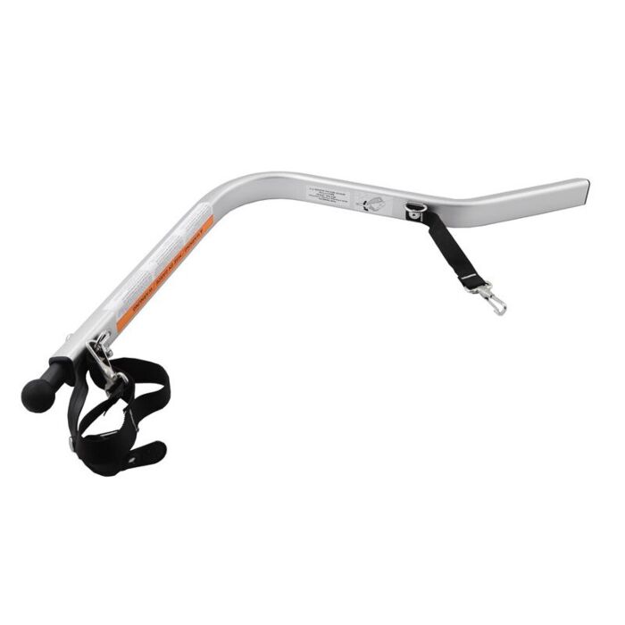 De hitch arm is gemaakt van duurzaam aluminium en hoogwaardig kunststof, wat zorgt voor een lange levensduur en betrouwbaarheid. De constructie is lichtgewicht maar stevig, waardoor hij optimaal functioneert zonder extra gewicht toe te voegen aan de kinderwagen of fietskar.