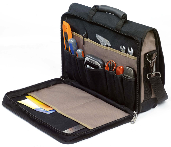 Het ontwerp van de ToolPack aktetas is gericht op gebruiksgemak. Het voorvak is ideaal voor het opbergen van documenten of kleinere gereedschappen, terwijl het ruime hoofdvak genoeg ruimte biedt voor grotere gereedschappen en accessoires. De combinatie van zakken en vakken helpt bij het gestructureerd opbergen van al je benodigdheden.