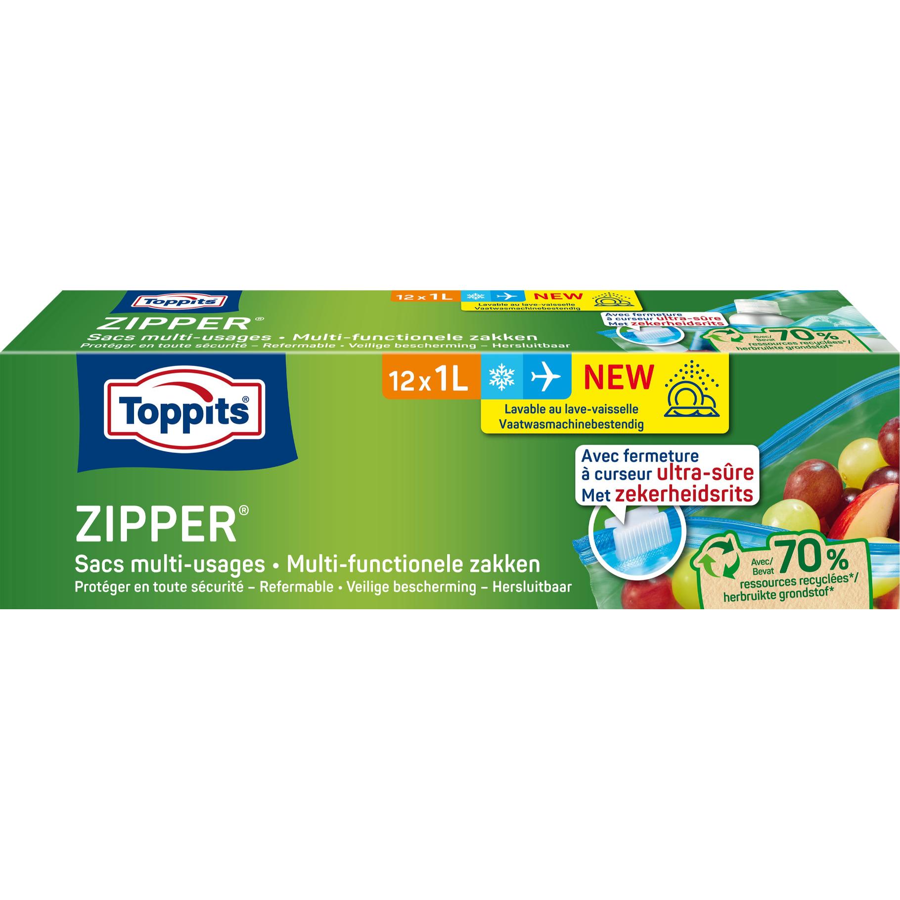 Toppits Zipper multifunctionele zakken | 1 liter | 12 stuks