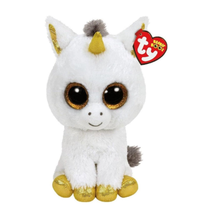 Ty Beanie Boo’s XL Pegasus is een prachtige grote knuffel in de vorm van een 42 cm hoge witte eenhoorn met goudkleurige details. Deze betoverende eenhoorn heeft een gouden hoorn en een volledig witte vacht. De felle kleuren maken het moeilijk haar ’s nachts te verstoppen. Pegasus viert haar verjaardag op 12 november en is een tijdloos object dat zowel kinderen als verzamelaars zal bekoren. Een perfect cadeau voor eenhoornliefhebbers van alle leeftijden.