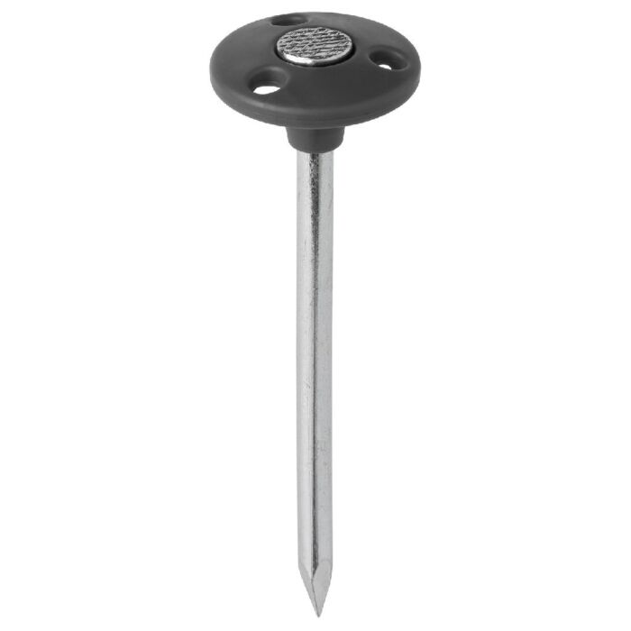 Elke grondpen is 180 cm lang en gemaakt van duurzaam verzinkt staal, voorzien van een robuuste kunststof knop.