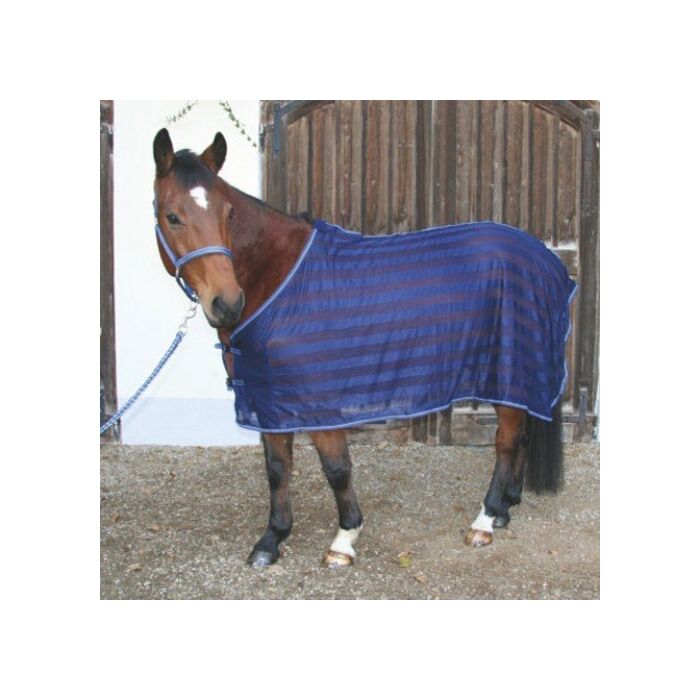 Beschermt uw paard/pony tegen vervelende insekten! Deze vliegendeken heeft een trendy streepjes-design en is van zeer licht materiaal. De deken ademt goed en is voorzien van twee borstsluitingen en een staartgordel voor een perfecte ligging. Tevens is de deken wasbaar op 30 graden.