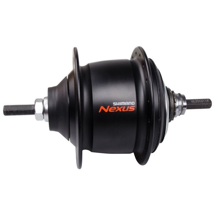 De versnellingsnaaf heeft een aslengte van 184 mm en een inbouwmaat van 132 mm, waardoor hij perfect compatibel is met een breed scala aan fietsen. De steekcirkeldiameter bedraagt 92,6 mm en de flensafstand is 58,3 mm. De flensdoorsnede is 105,2 mm. De naafhuls is vervaardigd uit duurzaam aluminium, wat bijdraagt aan de lichtgewicht constructie zonder in te boeten op sterkte. De kleur van de naaf is zwart, wat bijdraagt aan een stijlvol en modern uiterlijk.
