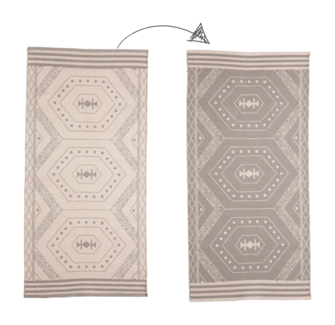 Dit vloerkleed is aan beide zijden voorzien van unieke prints, wat het een veelzijdige keuze maakt. Wanneer u toe bent aan een nieuwe look, draait u eenvoudig het vloerkleed om. De rechthoekige vorm maakt het gemakkelijk om het in verschillende ruimtes te plaatsen.