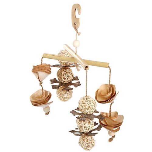 Deze speelmobiel voor vogels zit vol variatie en prikkelingen. Leuk vogelspeelgoed vervaardigd uit natuurlijke materialen zoals bamboe, riet en boomschors.