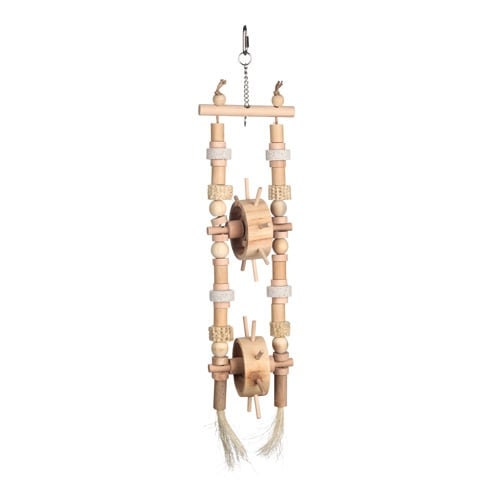 De ladder is ontworpen om op te hangen met behulp van één haak, wat eenvoudig te realiseren is. De unieke toevoeging van twee radjes in het midden die kunnen draaien, verhoogt de speelfactor en maakt het interactiever voor de vogels. De ladder slingert bovendien nog eens op en neer, wat perfect is voor een actieve speelervaring.