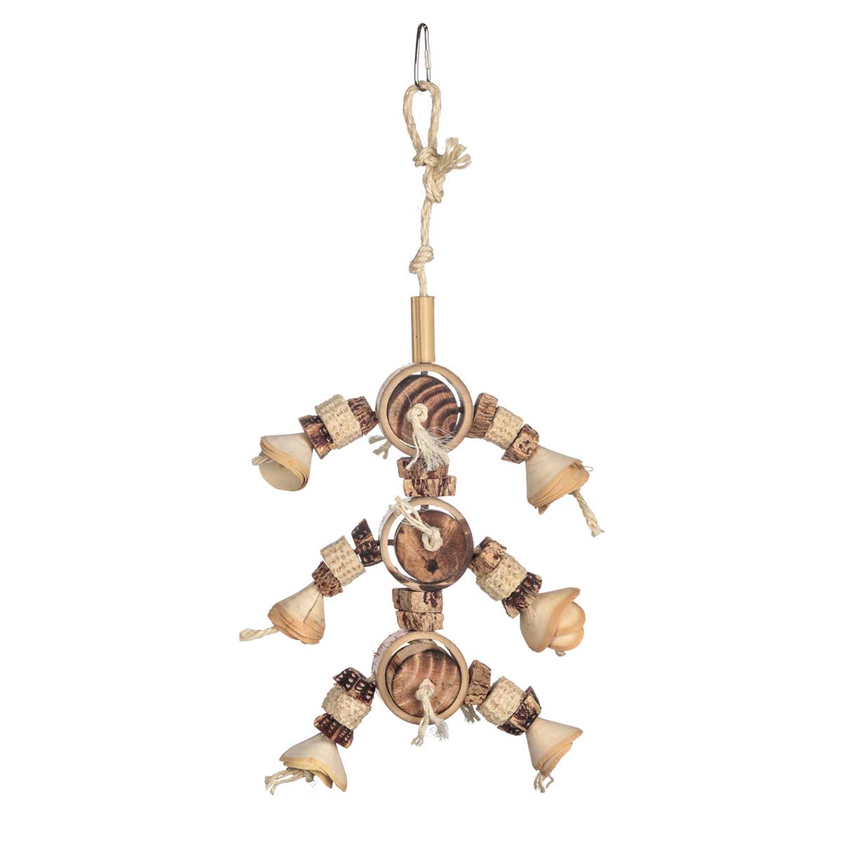 Het slimme ontwerp van dit speeltje moedigt vogels aan om te spelen en te ontdekken. De verschillende texturen en materialen stimuleren hun zintuigen en houden ze actief. Dit speeltje helpt bovendien bij het voorkomen van verveling, wat essentieel is voor de mentale gezondheid van uw vogel.