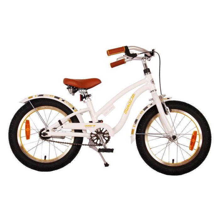 Het ontwerp van de Volare Miracle is zowel stijlvol als functioneel. De mooie witte kleur geeft de fiets een frisse uitstraling die bij veel meisjes past. Daarnaast zorgt de standaard ervoor dat de fiets op een rechte manier kan worden neergezet, wat de levensduur van het product ten goede komt.
