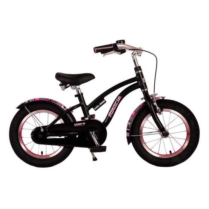 Voor elk kind is leren fietsen een feestje met de Volare Miracle 14 inch kinderfiets! Deze stoere meisjesfiets in mat zwart is ontworpen met veiligheid en comfort in gedachten. Ideaal voor jonge fietsers die hun eerste kilometers willen maken.