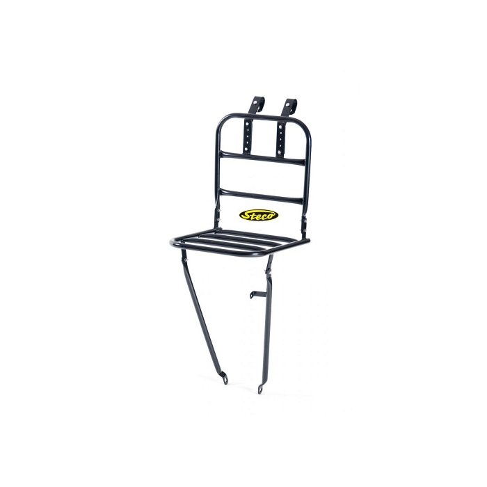 De Steco voordrager is een robuuste en veelzijdige oplossing voor het vervoeren van verschillende items op uw fiets. Met zijn stabiele 16 mm buisdrager is het uitermate geschikt voor het vervoeren van gereedschapskisten, grote dozen, manden of kratten. De voordrager is ontworpen om gemakkelijk te monteren en is geschikt voor zowel lage als hoge sturen dankzij de 10 cm verstelbare stuurhaken.