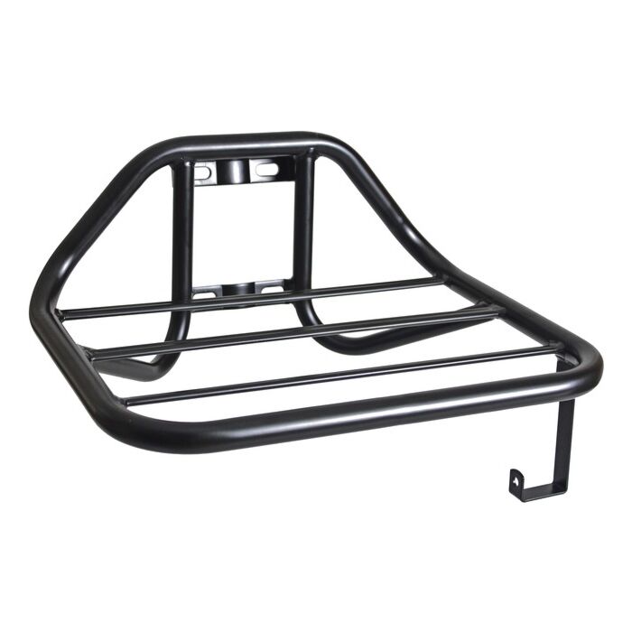 De voordrager is vervaardigd uit robuuste stalen buizen van 16 mm voor optimale stabiliteit en duurzaamheid. Met een maximale lengte van 35 cm en een breedte van 28 cm sluit hij perfect aan op standaardfietsframes. Zo vervoert u moeiteloos diverse ladingen, van boodschappen tot dozen.