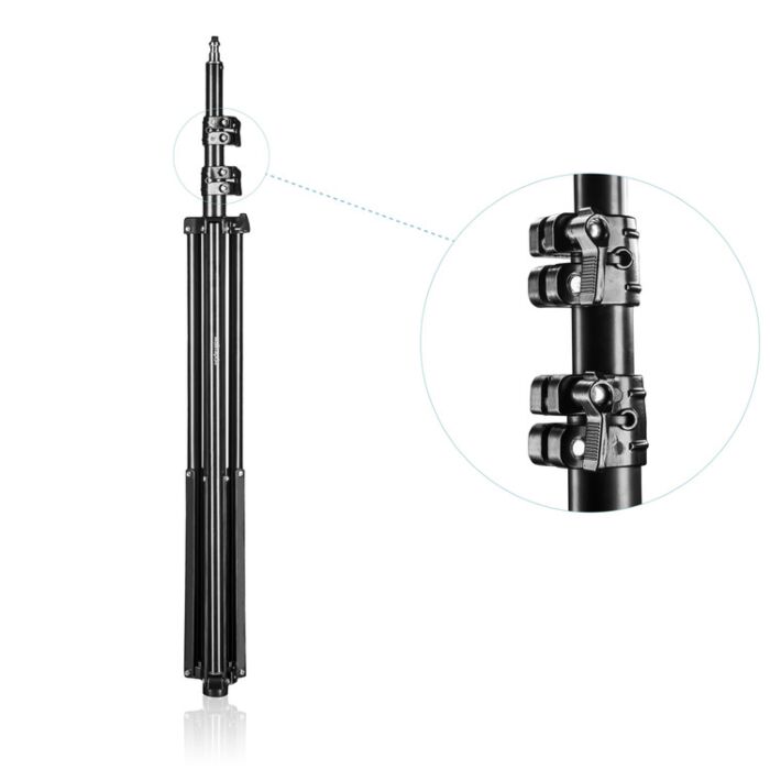 Dit achtergrondsysteem is ontworpen voor eenvoud en gebruiksgemak. Het stelt gebruikers in staat om snel een achtergrond op te zetten en te manoeuvreren, wat cruciaal is tijdens opnamesessies met beperkte tijd. De telescoopfunctie draagt bij aan de veelzijdigheid, waardoor het model geschikt is voor diverse soorten achtergronden.