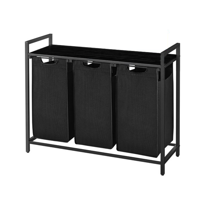 Hoppa! Wasmand | 3 Vakken | Vintage Zwart | Inclusief Uitschuifbare Waszakken | 92,5 x 33 x 72 cm (B x D x H)