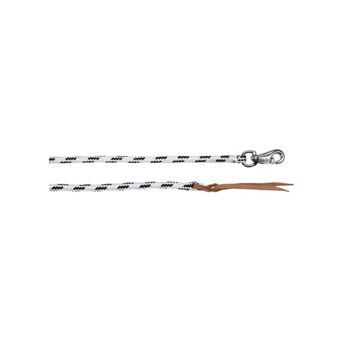 Deze geleidelijn is vervaardigd uit sterk gevlochten PP met een stevig lederen handvat. De lijn heeft een lengte van 4 meter en is voorzien van een Bull Snap.
