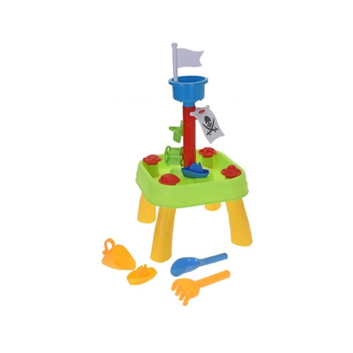 De tafel is ontworpen om interactief spel te bevorderen, met zowel een zandgedeelte als een watergedeelte. Het piraten-thema voegt een speels element toe aan de activiteiten, waardoor kinderen hun verbeelding kunnen gebruiken tijdens het spelen.