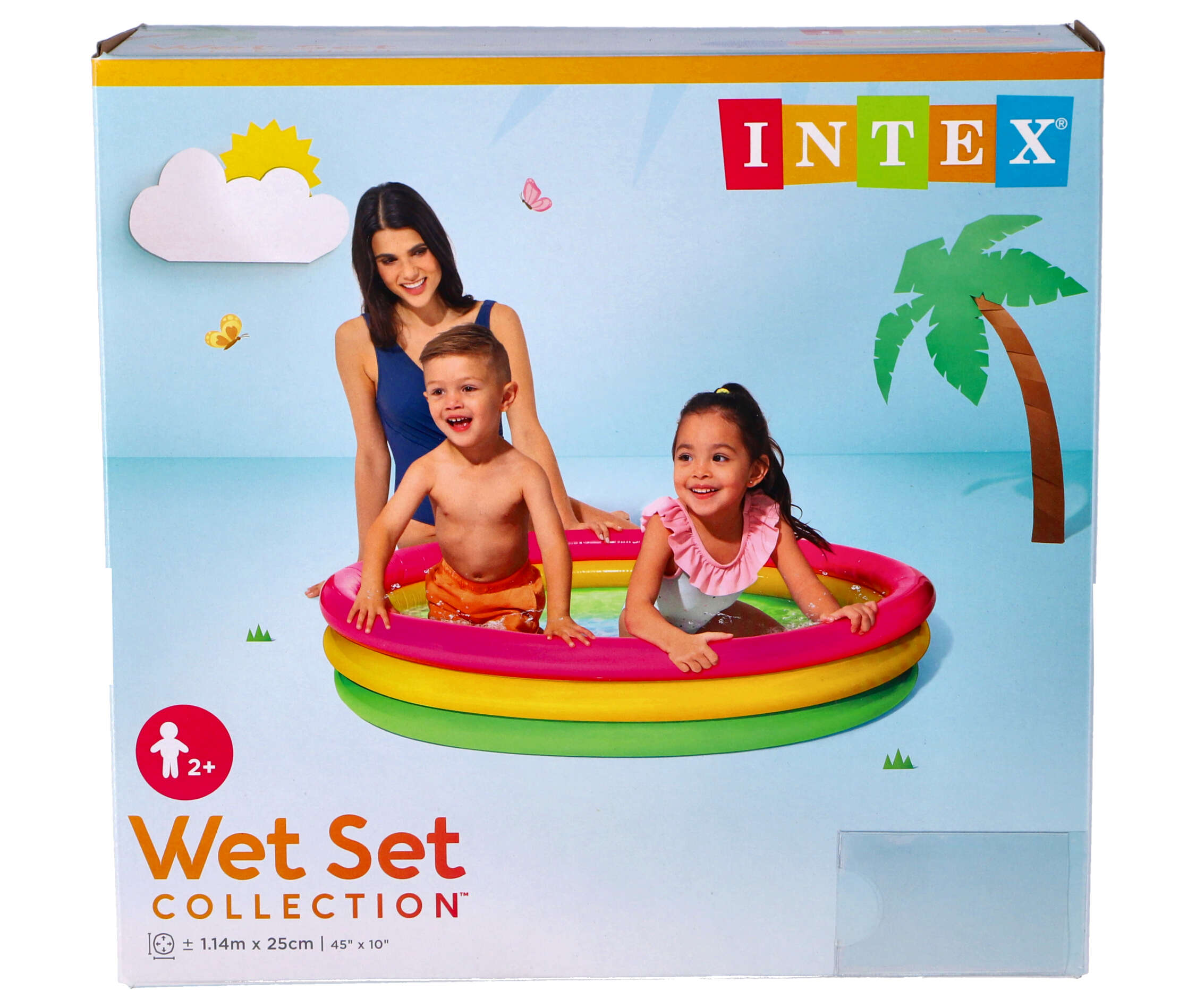 Dit Intex Sunset Glow 2+ opblaasbaar zwembad is ideaal voor kinderen van 2 jaar oud. Het badje heeft een zachte, opblaasbare bodem waardoor het comfortabel is voor kleine zwemmers.